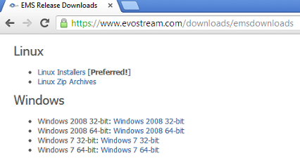 Get EvoStream Media ServerDownload the zipped file from here. Choose the correct Windows OS version as well as the architecture (32 or 64 bit). ![]()