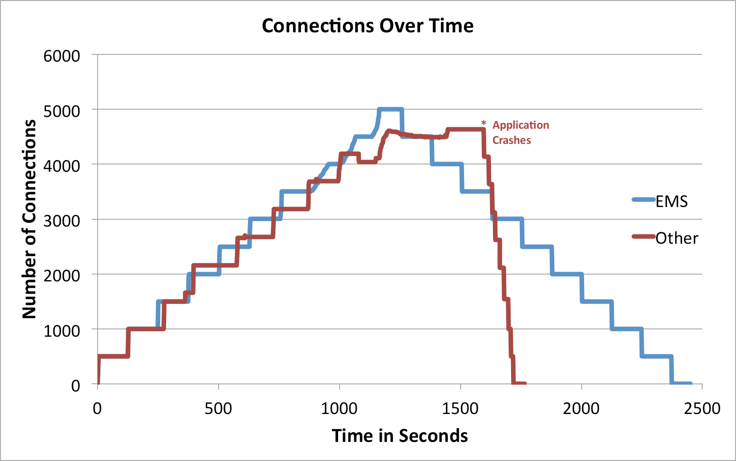 - After 5,000 active connections, remove 500 RTMP clients every 120 seconds