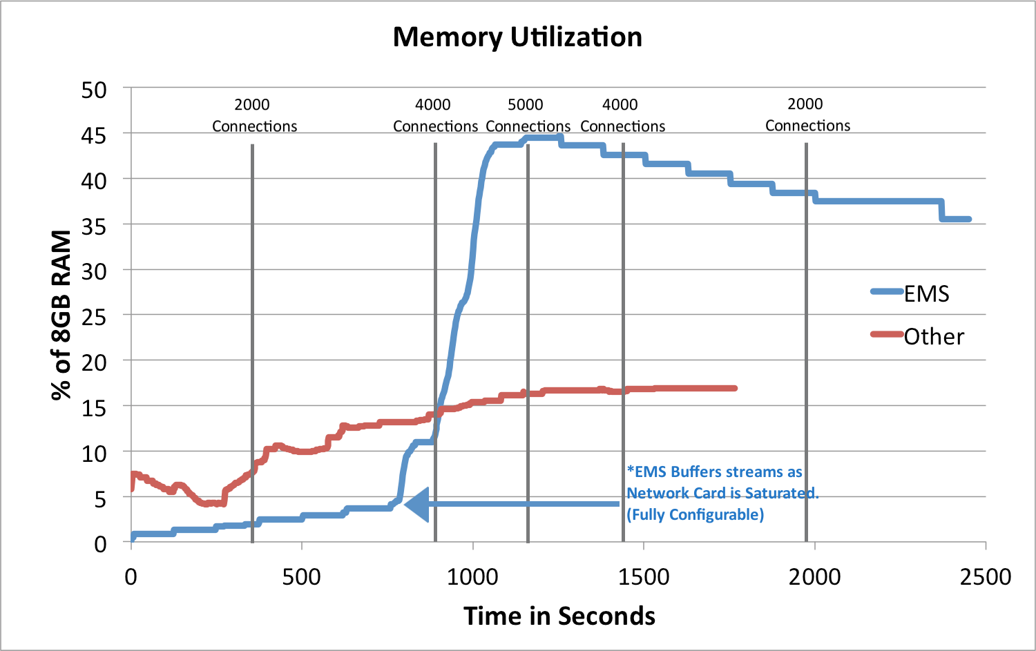 *The results of the efficiency test show the EvoStream Media Server is capable of handling 4 times the number of clients as compared to the competition.